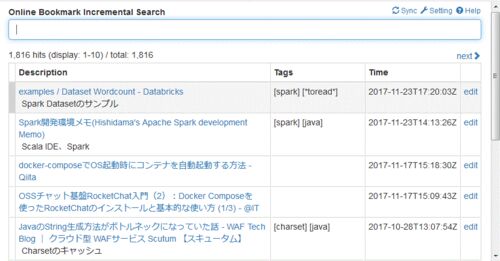 v1.0.2を公開しました。 Online Bookmark Incremental Search for Firefox – Firefox 向けアドオン 変更点は下記の2件です。 入力欄でリターンキーを押下した場合にリロードしてしまう(submitしてしまう)問題修正 アプリケーションを開くためのショートカッ…